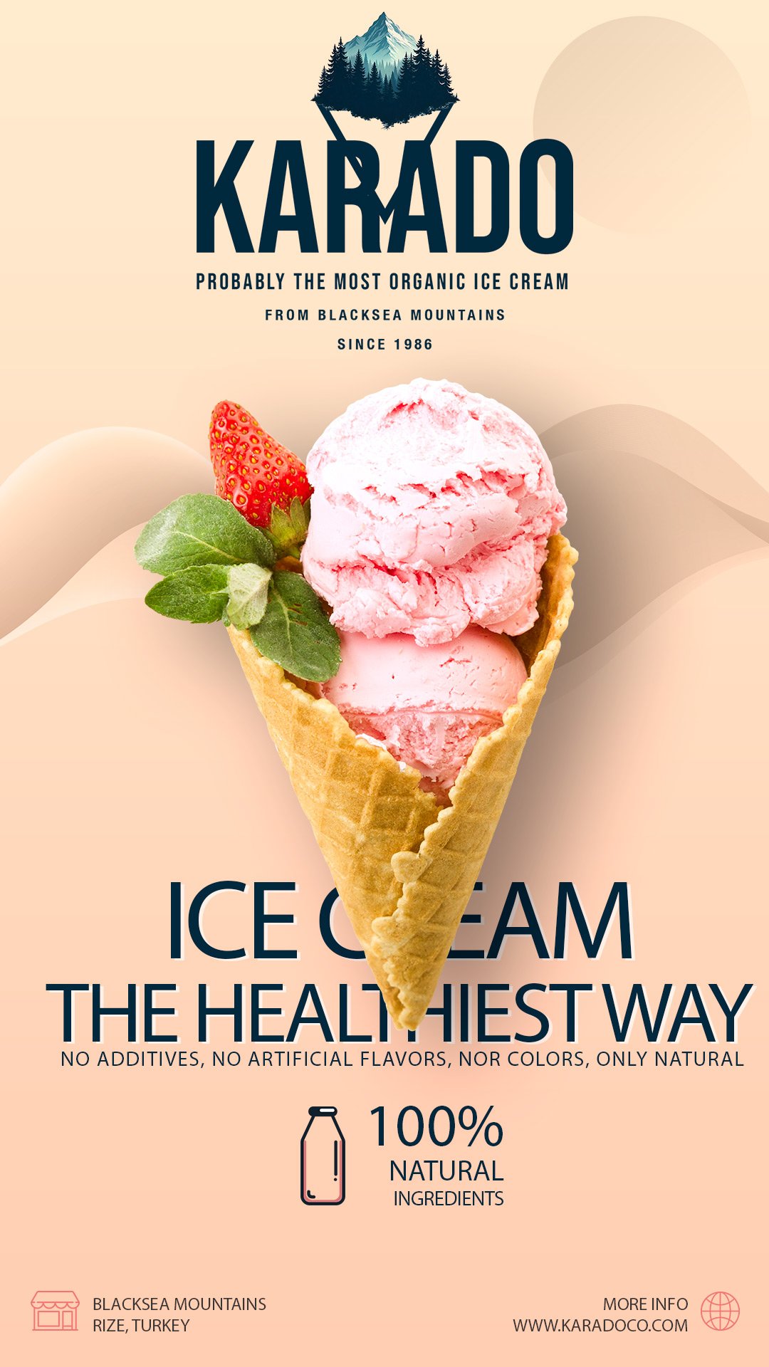 KARADO ile Dondurma, sıcak günleri ve geceleri serinletirken memnuniyet, rahatlama, ferahlatma ve besleyici bir şekilde besleme, vitamin, lif ve daha fazlasını sağlayarak varoluşunun Yeni Anlamını buluyor... Sağlıklı girişimimizin, daha sağlıklı bedenler, zihinler ve ruhlar için, daha sağlıklı, mutlu, ve Merhamet dolu bilinçli bir dünyaya doğru tüm Dünya Üreticilerine ilham olması dileğiyle...